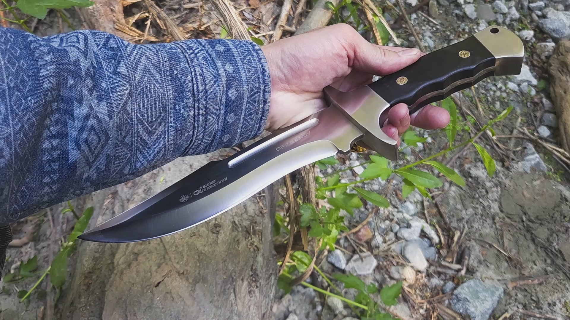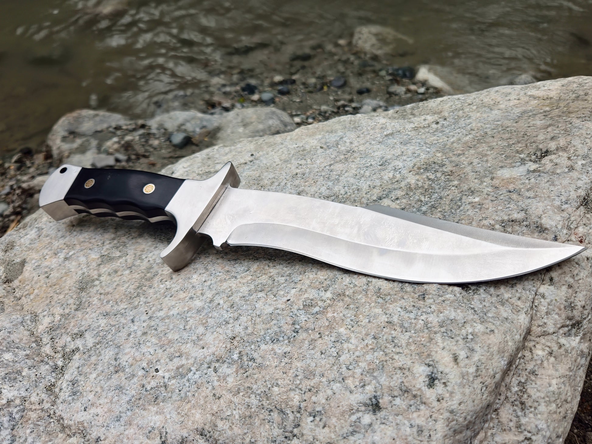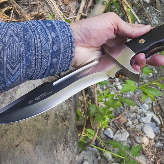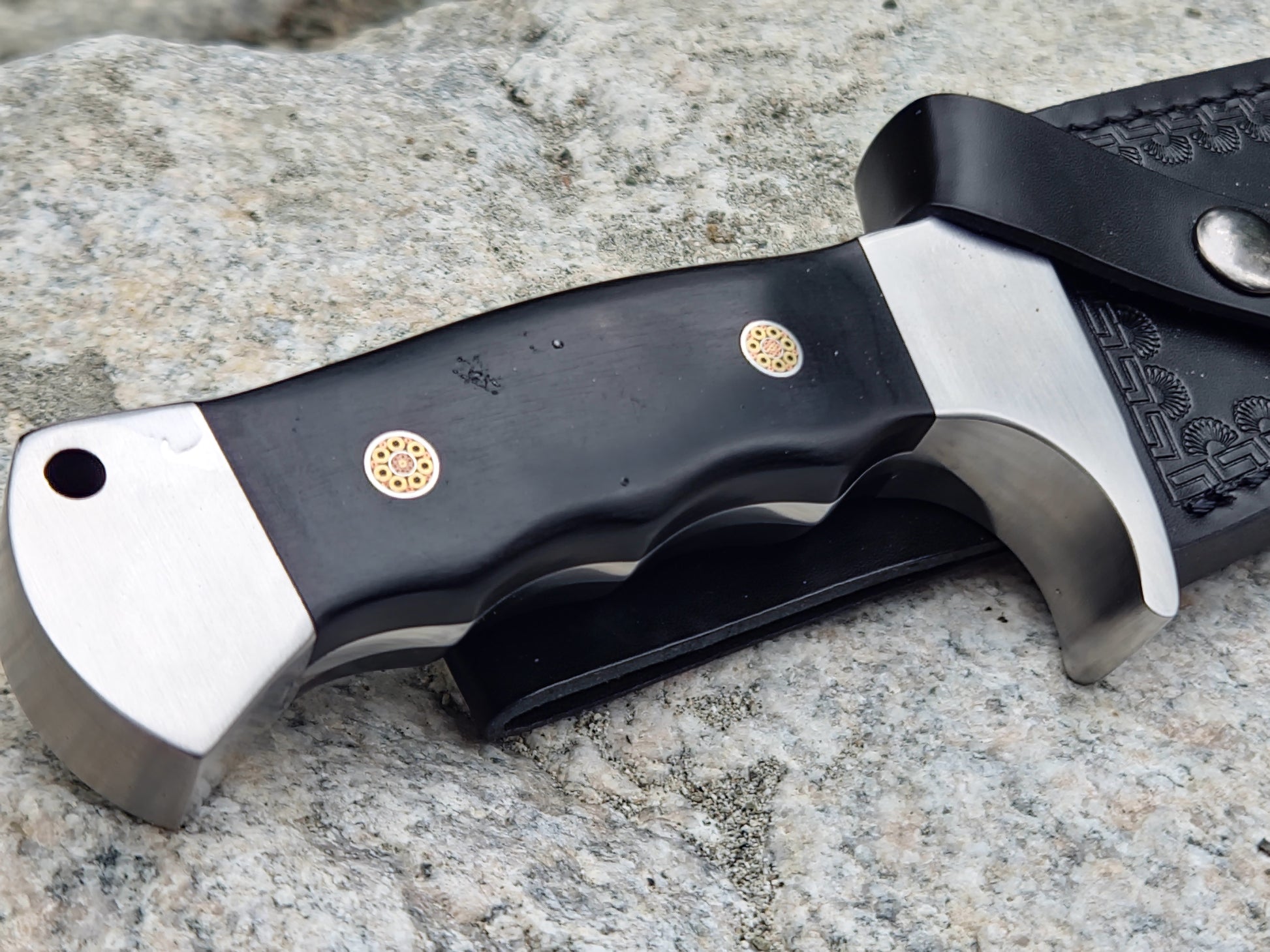 The black wood handle is shaped for a secure, ergonomic grip and anchored with solid fasteners for long-term durability. Its dark finish pairs naturally with the polished blade, giving the knife a clean, understated look that balances tradition with modern craftsmanship.